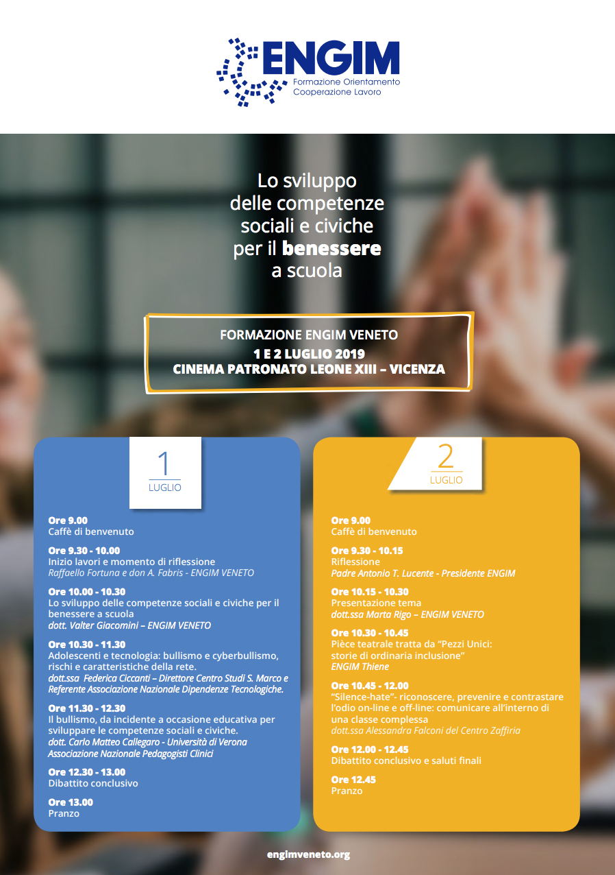 Le giornate sono introdotte da due momenti di riflessione a cura di don Fabris (ENGIM Veneto) e del Presidente ENGIM don Padre Lucente.